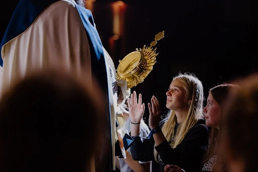 13 juli 2025 – Een middelbare scholier vereert de Eucharistie…