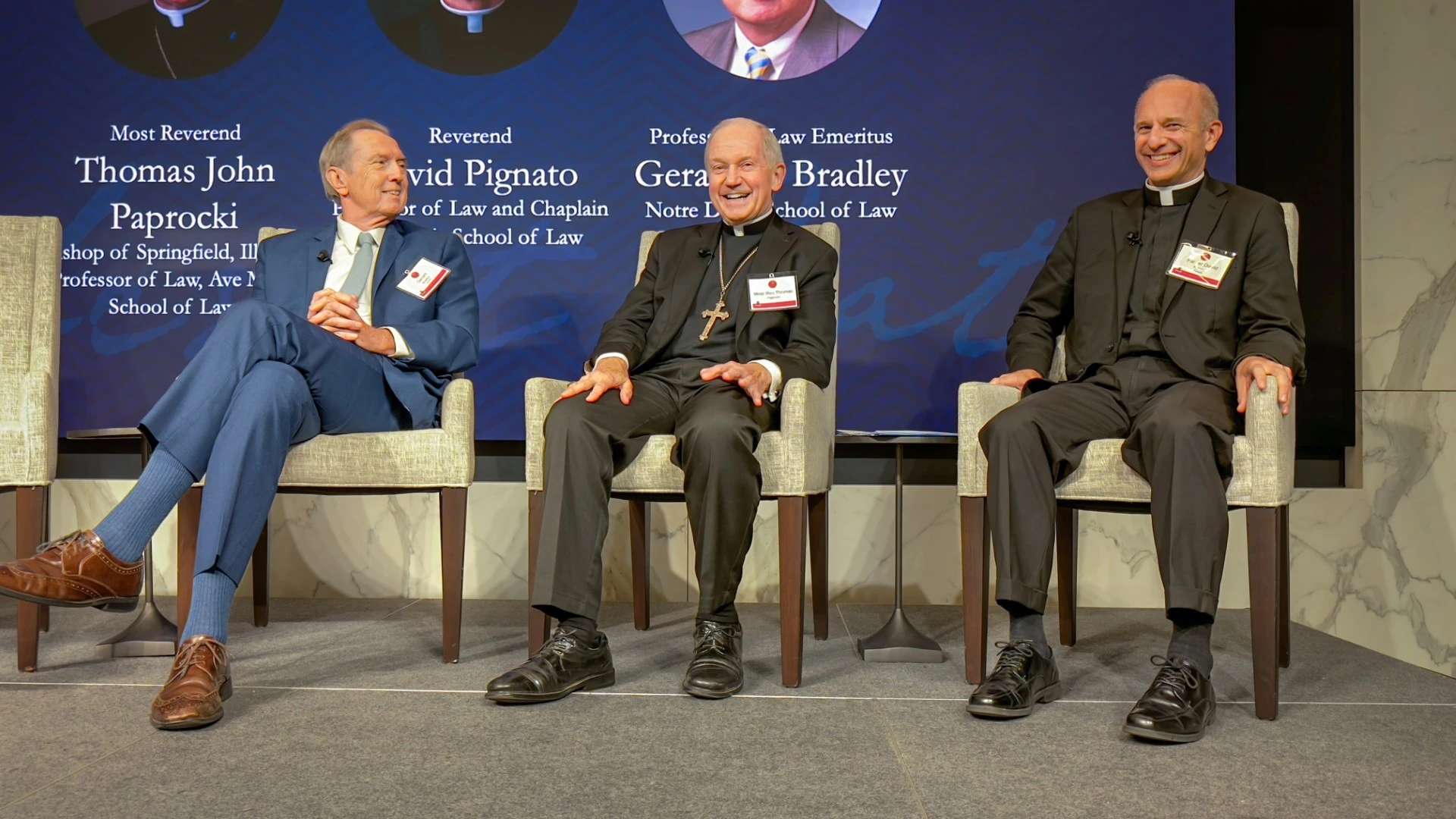 Gerard Bradley, een gepensioneerd rechtenprofessor aan Notre Dame, zei op de conferentie dat het onderscheid tussen een seculiere rechtenfaculteit en een katholieke rechtenfaculteit zou moeten zijn dat een katholieke school “verbonden is … niet alleen met deze waarheid of die waarheid, maar met het hele concept van waarheid.” Hij zei dat een katholieke rechtenfaculteit de opvatting moet weerspiegelen dat katholieke doctrines “waarheden zijn die alles wat we doen doordringen.”