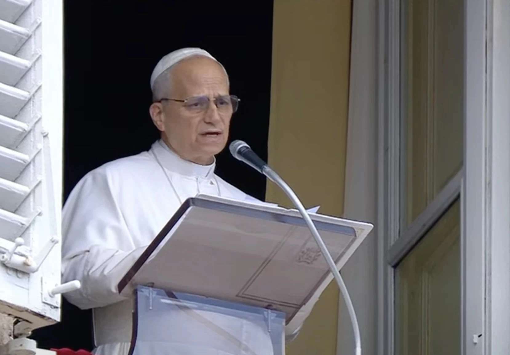 27 juli 2025 – Paus Leo XIV dringt aan op “volledig respect voor het humanitaire recht” te midden van een voedselcrisis in Gaza in zijn toespraak na het Angelus-gebed op 27 juli 2025 in het Vaticaan. Foto: Vatican Media screenshot